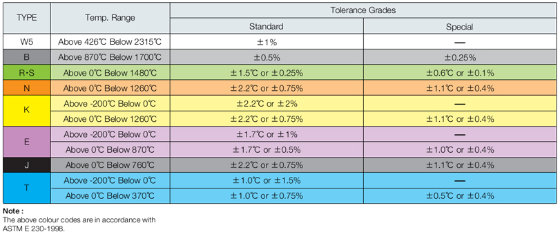 Thermocouple conductors come in a variety of sizes. Depending on your application, the gauge selected will affect the thermocouple's performance. The larger the gauge size, the more thermal mass the thermocouple will have with a corresponding decrease in response. The larger the gauge size the greater the stability and oper-ating life. Conversely, a smaller gauge size will have a quicker response, but may not deliver the stability or oper-ating life required.